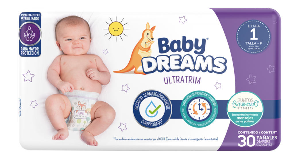 Para la suavidad que necesita la piel de tu bebé en estos primeros meses, elige pañales Baby Dreams: