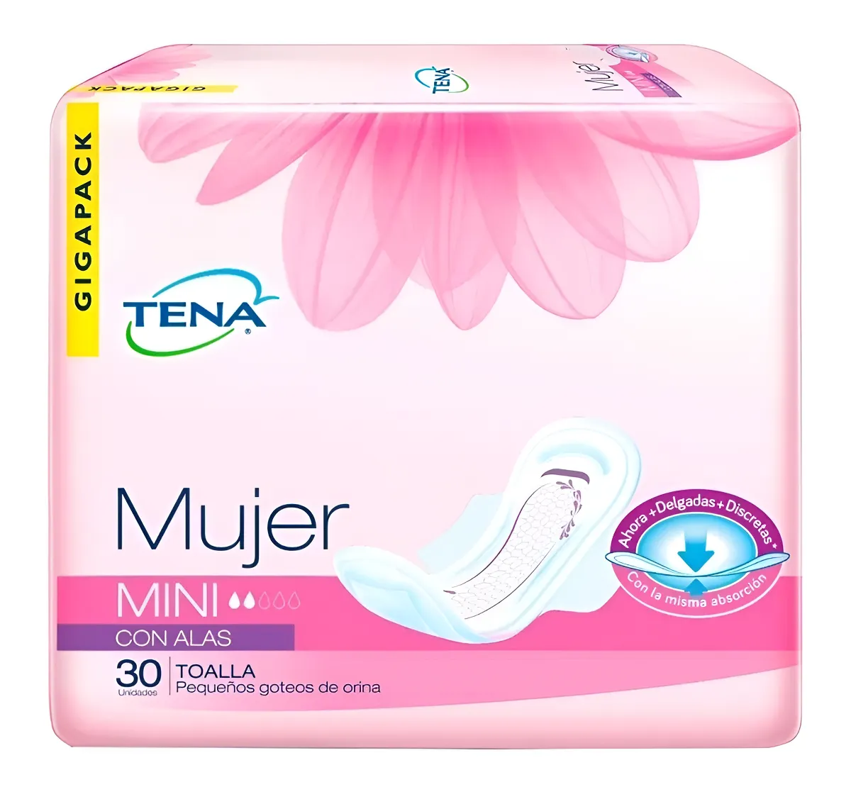 Tena Mujer Mini de TENA ofrecen protección ligera ideal para flujo reducido y días de menor intensidad. Perfil delgado asegura máxima discreción sin sacrificar protección. Disponible en presentaciones de 10 y 30 unidades. Diseño compacto facilita portabilidad y comodidad. Compra tus toallas TENA en Pañalera Universal, con precios especiales y envío rápido a toda Colombia. Elige la presentación ideal y disfruta protección discreta con respaldo técnico de TENA.