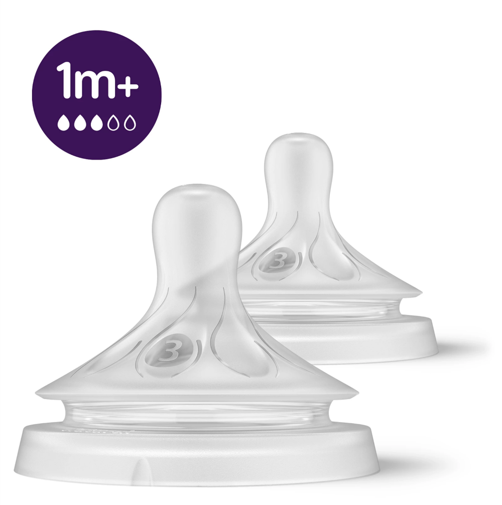 La tetina Natural Response solo libera leche cuando el bebé se ingiere leche activamente. Los bebés pueden alimentarse a su propio ritmo como en el pecho, lo que facilita la combinación de la lactancia materna y el biberón. Encontrar la tetina correcta es importante. Consulte más detalles a continuación.