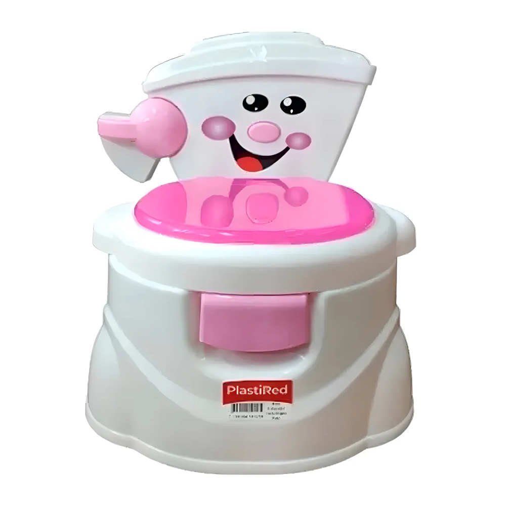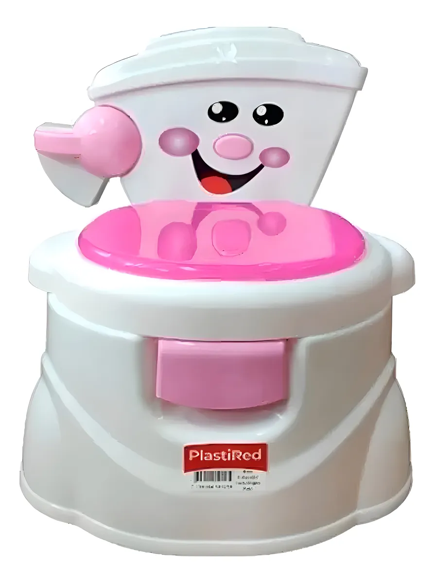 Vasenilla motivo Carita Praktiplast donde tu bebe puede aprender hacer del baño y dejar el pañal. Con esta practica bacinilla puede continuar con su desarrollo practicando para que pueda ir al baño independientemente.